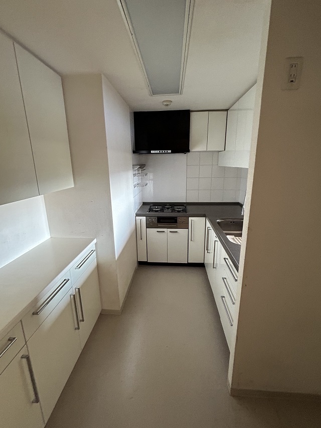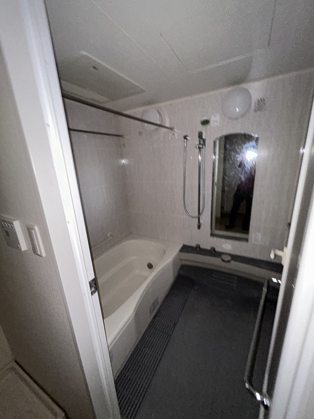 築45年のマンションのリノベーションです。浴室は、タイルからユニットへ交換し、トイレは別にしました。トイレ設置には押入れ部分を利用したので、収納スペースを確保するため、下に収納庫がついたベットスペースを作りました。キッチンも収納を増やすため、可動式の収納棚を設置しました。