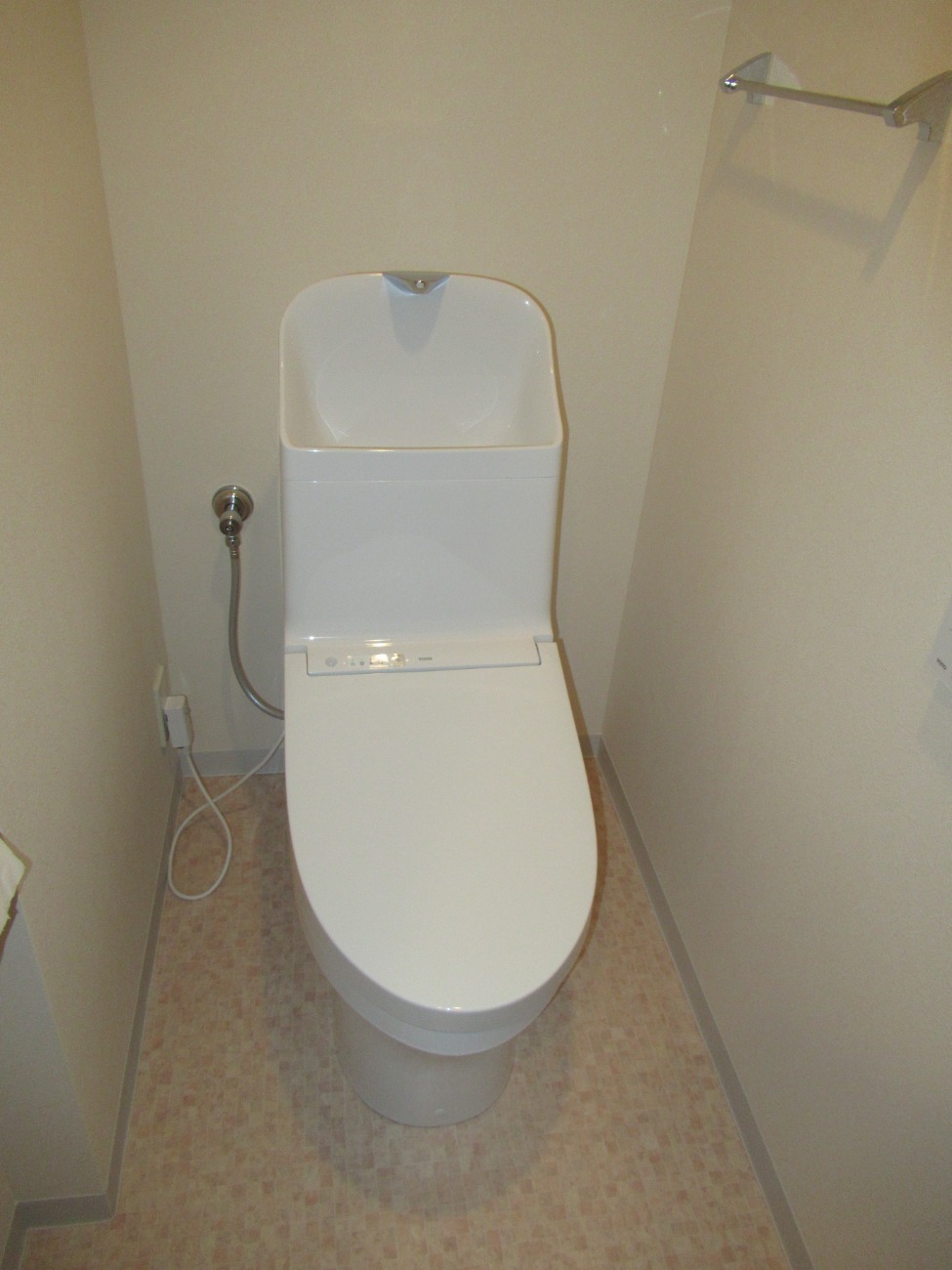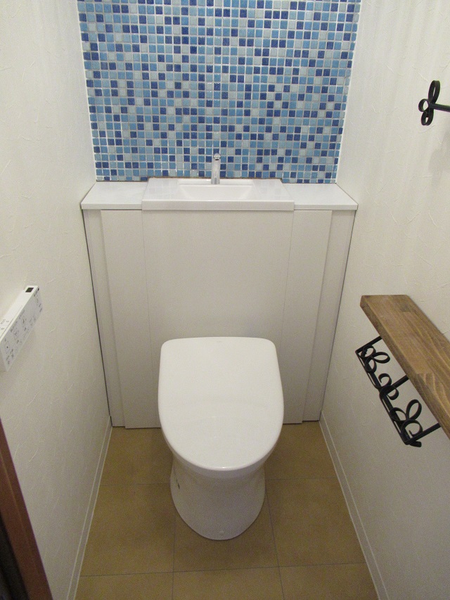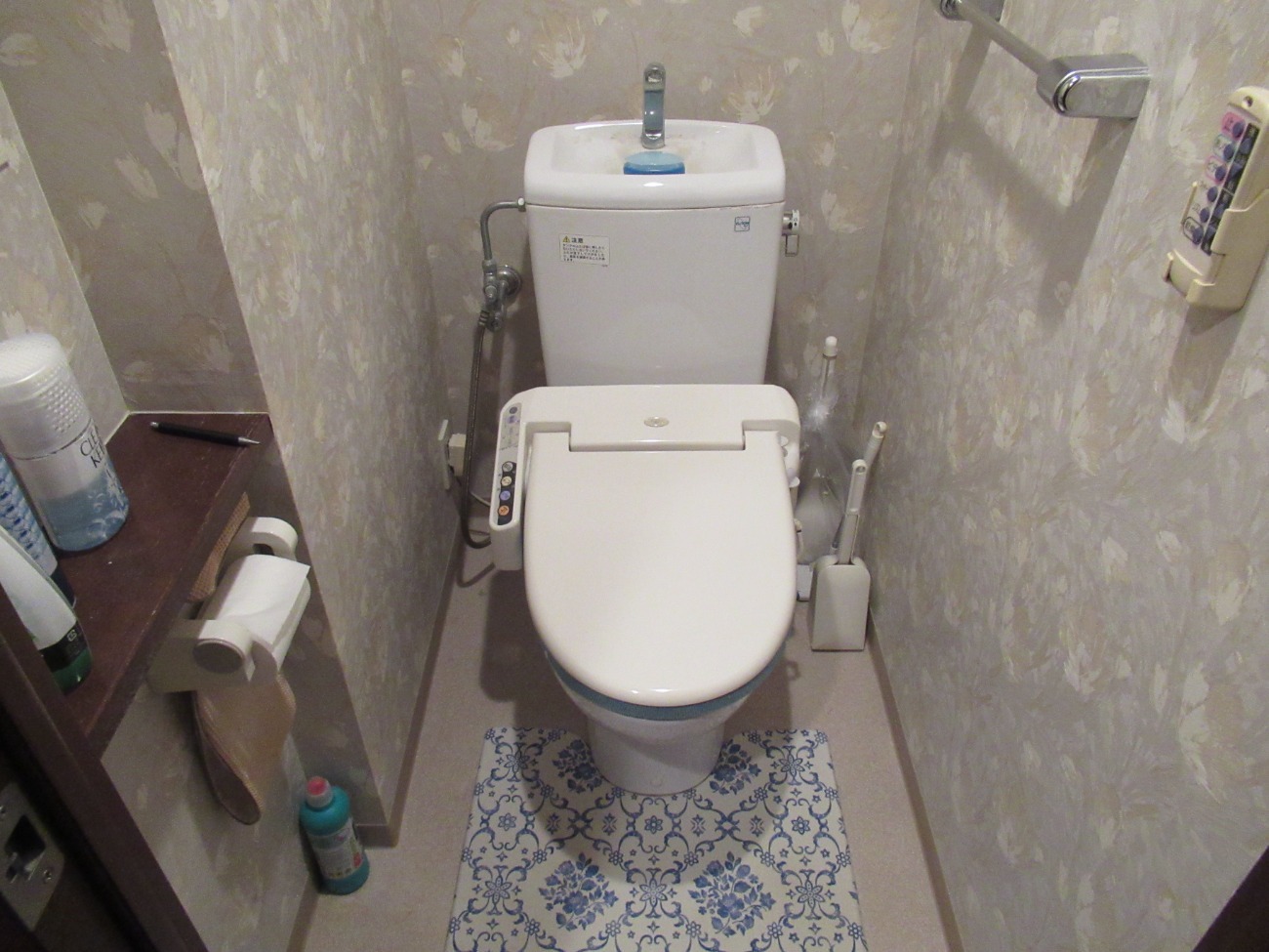 長くお使いの水回りを、一新されたいとご依頼を頂きました。 トイレはタンク付ですが、デザインがすっきりしているためご好評です。